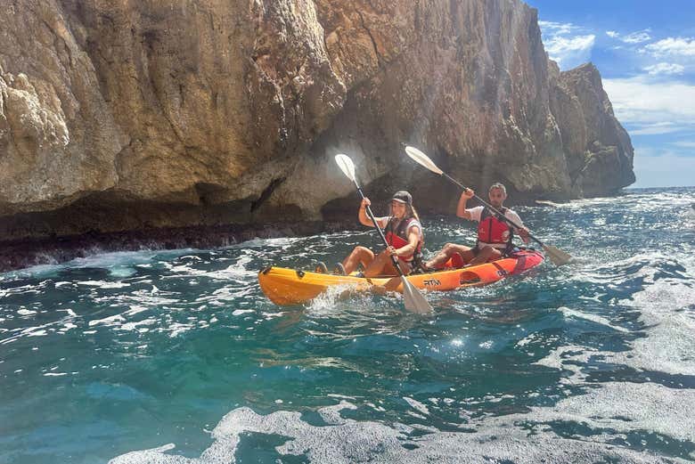 Una vez preparados, comenzaremos a remar en kayak por el entorno de la Cala Granadella, considerada como una de las playas más bonitas de la Costa Blanca. ¡Este enclave de la provincia de Alicante os cautivará al instante! Navegaremos en primer lugar hasta el Morro del Pino, donde visitaremos la Cala en Caló.