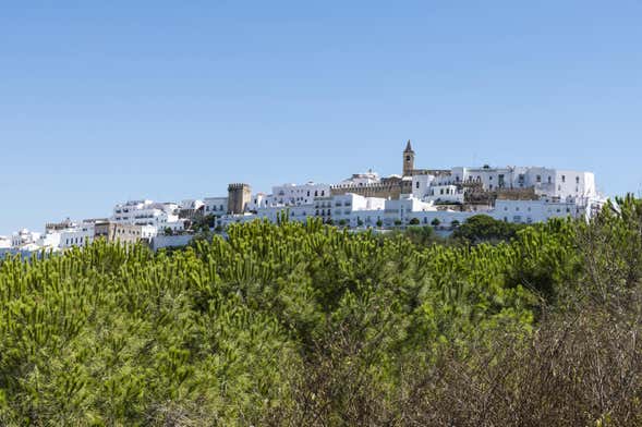 Pararemos primero en Vejer de la Frontera. Una vez lleguemos, realizaremos un tour a pie por el centro histórico de la localidad. Paseando por sus calles de viviendas encaladas descubriremos por qué este bello municipio pertenece al prestigioso grupo de la Asociación de los Pueblos más Bonitos de España. Recorreremos los puntos más emblemáticos de Vejer, como su pintoresca Plaza de España y sus antiguas murallas de origen medieval.