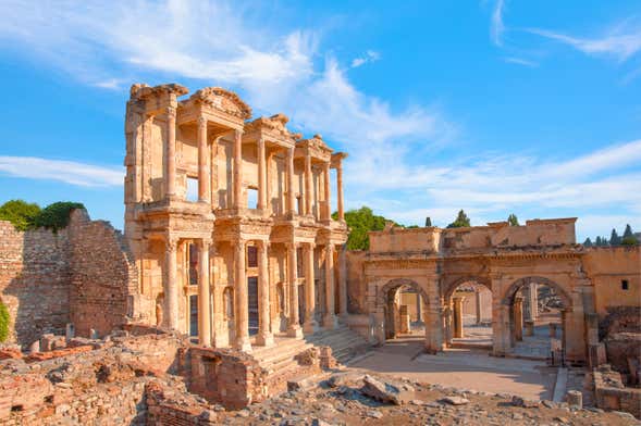 Continuaremos nuestro recorrido desplazándonos cinco kilómetros al norte, donde disfrutaremos de una visita guiada por el yacimiento de Éfeso. Este emplazamiento arqueológico conserva las ruinas de una de las ciudades más esplendorosas de la Antigüedad. Durante el recorrido por el enclave, declarado Patrimonio de la Humanidad, contemplaremos sus principales joyas monumentales. Entre ellas destaca la Biblioteca de Celso: uno de los archivos bibliográficos más suntuosos del Imperio Romano en el Mediterráneo Oriental. El senador Tiberio Julio Celso ordenó ser enterrado en este lugar ¡Con más de 10.000 rollos de pergaminos!