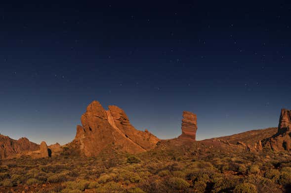 Después nos dirigiremos hacia el interior de la isla para realizar una visita guiada nocturna por el Parque Nacional de las Cañadas del Teide. La escasa contaminación lumínica de este entorno natural, ya de por sí bello a la luz del día, cobra una mayor espectacularidad al caer la noche.