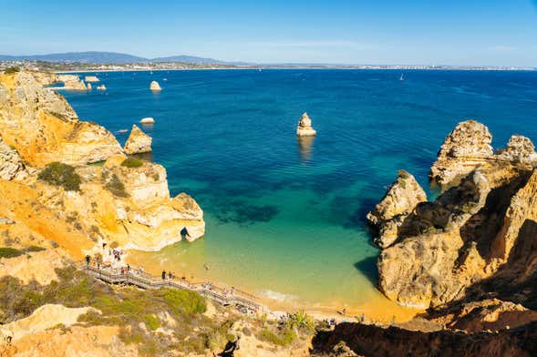Durante la ruta, la tripulación irá compartiendo con vosotros detalles interesantes sobre la historia y la orografía de la costa de Lagos. Además, para que podáis daros un chapuzón en aguas del Atlántico, haremos una parada en una tranquila bahía.