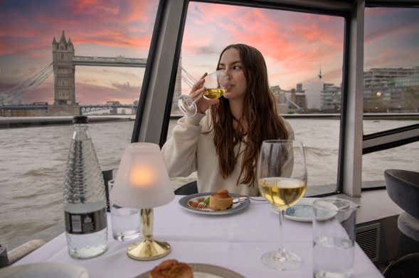 Mientras disfrutáis de unas vistas increíbles del Londres iluminado, comenzaremos a serviros el menú de 4 platos y una copa de bienvenida. Para que la velada sea perfecta, también acompañaremos la cena con música en directo.