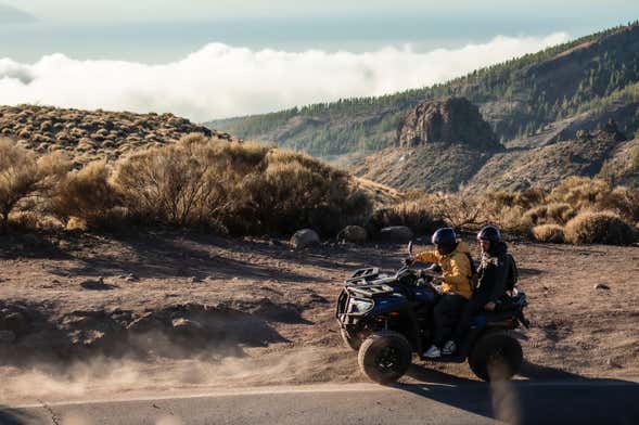Además, durante el tour en quad veremos Arona y conoceremos Vilaflor antes de llegar al Teide, el pico más alto de España. ¡Alcanzaremos los 2400 metros de altura!