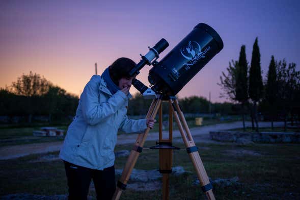 En la segunda parte del tour usaremos un telescopio para observar el firmamento. Gracias a este utensilio seremos capaces de ver cunas estelares, planetas e incluso otras galaxias lejanas. Tras esta experiencia didáctica y entretenida, podréis reconocer vosotros mismos las constelaciones, estrellas y planetas que pueden verse en el cielo nocturno.