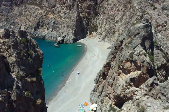 Continuaremos el tour y nos detendremos en la entrada de la garganta de Agiofarago. En este punto, comenzaremos un recorrido a pie por el desfiladero contemplando la preciosa naturaleza de la zona. Tras un paseo de 20 minutos, llegaremos a la playa de Agirofarago, donde podréis nadar en sus aguas cristalinas y comer en un restaurante local, donde degustaréis un menú compuesto por un plato principal, una ensalada y un postre.