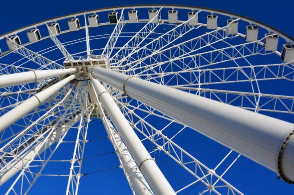 Con esta entrada podréis subir a la noria y disfrutar de un recorrido de 20 minutos de duración. Ascenderéis en esta enorme rueda giratoria hasta alcanzar una altura similar a la de un edificio de 20 pisos. ¿Quién dijo vértigo?