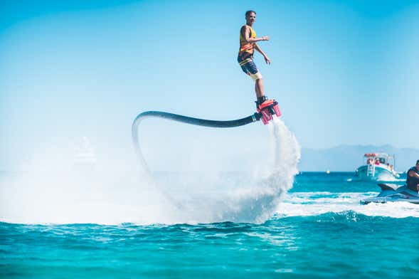 Impulsados por un cañón de agua, sentiréis cómo vuestros pies se alejan de la superficie para “volar” sobre el mar. No importa si os caéis, levantarse y volver a la carga es más sencillo de lo que parece. Os sentiréis como auténticos superhéroes mientras saltáis, giráis y planeáis sobre el mar. ¡Será una experiencia inolvidable!