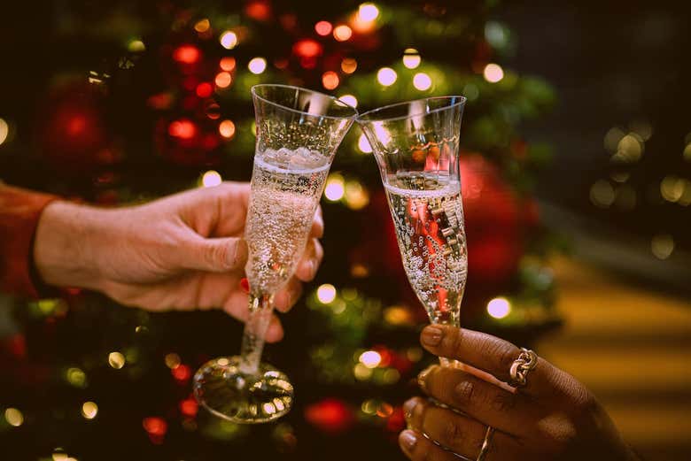 Cuando el reloj marque las 12 de la noche, recibiréis una copa de champán para brindar por el Año Nuevo con vuestros seres queridos. En este momento, además, contemplaremos el maravilloso espectáculo de fuegos artificiales de Nueva York. ¡Os quedaréis boquiabiertos con la belleza de los colores en el cielo!
