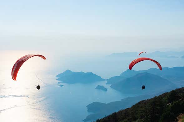 Durante 40 minutos de vuelo surcaréis los cielos de Ölüdeniz realizando piruetas en el aire y contemplando a vista de pájaro los maravillosos paisajes de la Laguna Azul y las llanuras meridionales de Turquía. ¡Os sentiréis los reyes del mundo!