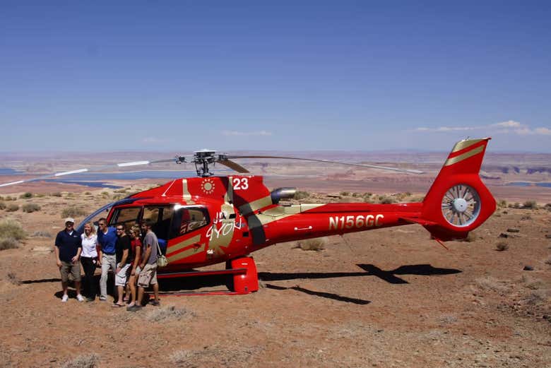 Sobrevolaremos los paisajes del desierto de Arizona contemplando las increíbles vistas desde el helicóptero de la presa del cañón de Glen, la segunda más grande del río Colorado, y del lago artificial de Powell.