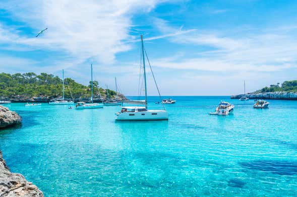 Desde la cubierta, os deleitaréis con las espectaculares playas turquesas de la bahía de Palma. Navegaremos rumbo sureste, haciendo una parada para que podáis daros un baño en el impresionante Cap Rocat, y llegaremos hasta la zona de Cala Vella, donde fondearemos para que podáis daros otro agradable chapuzón. Si queréis, podéis utilizar el equipo de snorkel que tendréis a vuestra disposición.