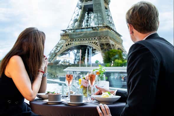 Además, a bordo os serviremos una comida de 3 o 4 platos, en función de la modalidad que hayáis escogido. Disfrutaréis de la exquisita gastronomía francesa rodeados de una atmósfera mágica y de bellos monumentos.