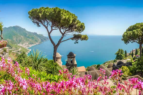 Para terminar, tomaremos altura y os llevaremos hasta Ravello, probablemente uno de los pueblos más bonitos de la Costa Amalfitana. ¿No os lo creéis? ¡Comprobadlo vosotros mismos! Os dejaremos 40 minutos de tiempo libre para que disfrutéis de las fascinantes vistas que os esperan en Villa Rufolo o en la terraza infinita de Villa Cimbrone.