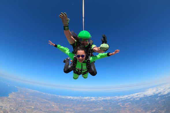 Ahora sí, habrá llegado el momento más emocionante de la experiencia. Nos engancharemos al instructor y, antes de que os deis cuenta, ¡estaréis saltando al vacío! Durante los 15 trepidantes segundos que dura la caída libre antes de que se abra el paracaídas, viviréis una sensación difícil de explicar.