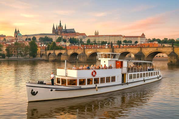 Durante una hora, navegaremos por el corazón de Praga disfrutando de unas vistas privilegiadas de sus monumentos más representativos. Desde la cubierta del barco, admiraremos el majestuoso Castillo de Praga, que se alza sobre la ciudad con una silueta inconfundible.