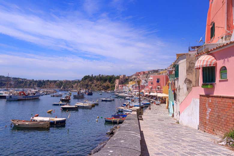 Desde aquí, caminaremos hasta la Corricella, un puerto del siglo XVII famoso por su peculiar arquitectura. Más tarde, subiremos al castillo de Procida y continuaremos hasta la Terra Murata, desde donde disfrutaremos de unas bonitas vistas.