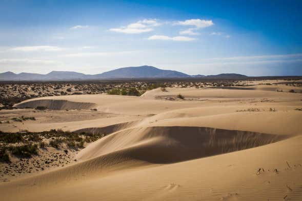 Tras un viaje de media hora, llegaremos a la primera parada: el Parque Natural de las Dunas de Corralejo. Una vez allí, nos maravillaremos con el impresionante paisaje, que combina a la perfección la playa con la arena de las dunas. ¡Os enamorará!