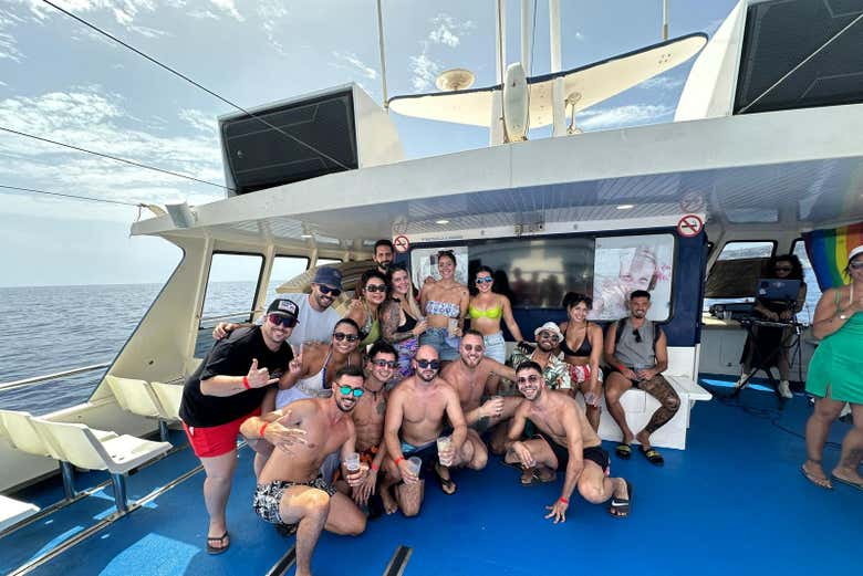 ¿Preparados para pasarlo genial en alta mar? Nos reuniremos a la hora indicada en el muelle de Puerto Rico y, desde esta localidad del sur de Gran Canaria, zarparemos a bordo de un catamarán. ¡Que comience la fiesta en barco!