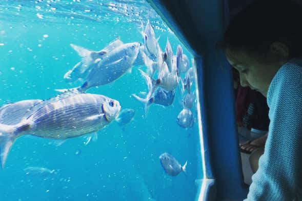 A la hora indicada nos encontraremos en el punto seleccionado de Rosas donde nos estará esperando el catamarán con visión submarina que nos llevará a conocer el Cabo Norfeu y la bahía de Jóncols.