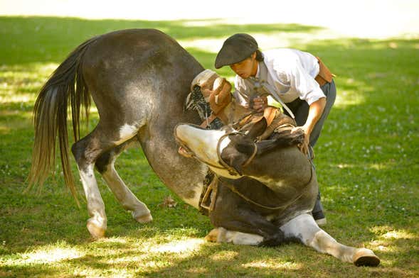 Después, seguiremos aprendiendo sobre la cultura gaucha escuchando la guitarra clásica y disfrutando de un baile folclórico. ¿Aún tenéis ganas de más? Para ponerle el broche de oro a la experiencia, podréis asistir a diferentes exhibiciones ecuestres, como la doma india o la tropilla. ¡Os quedaréis totalmente fascinados!
