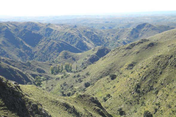 Atravesando el zigzagueante trazado que recorre esta zona de las sierras pampeanas, veremos un paisaje espectacular, con cerros que se extienden por todas partes. Las faldas de estas colinas están teñidas de verde debido a la gran diversidad botánica que conoceremos a lo largo del tour.