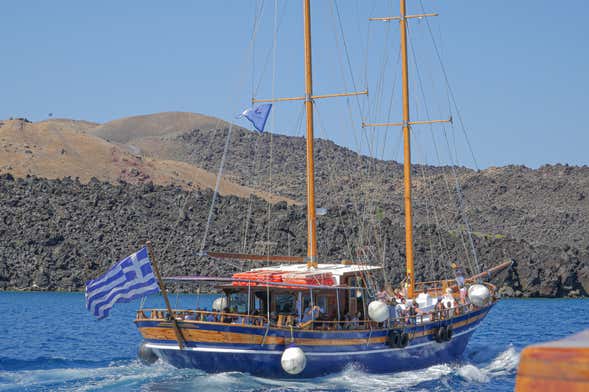 Durante el recorrido, pasaremos por Nea Kameni y después por Palea Kameni, los paisajes de ambas islas volcánicas son impresionantes. Durante tres horas, os encantará relajaros con la brisa del mar y disfrutaréis como nuca de un paseo en barco inolvidable. Al terminar la travesía, nos despediremos en el puerto de partida.