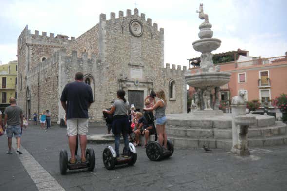 Antes de empezar, aprenderemos a manejar los segways para poder seguir al guía sin ninguna dificultad. Después, el recorrido nos llevará a través del arco de Porta Catania hasta el centro histórico. Pasaremos por las principales avenidas y plazas de la ciudad, como la Piazza Duomo, donde veremos la catedral de San Nicolás, el Ayuntamiento y la fuente de la Centaura, uno de los símbolos de Taormina.