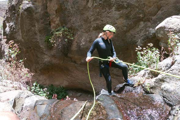 Disfrutaremos de uno de los barrancos más bonitos de Gran Canaria mientras combinamos senderismo, salto, rápel y natación. ¡Será una experiencia increíble!