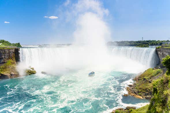 Tras casi una hora y media de recorrido en el que bordearemos el Lago Ontario, llegaremos a las Cataratas del Niágara. Una vez allí, subiremos a bordo de una embarcación que nos acercará el máximo posible hasta ese enorme salto de agua de casi 100 metros de altura (billetes no incluidos).