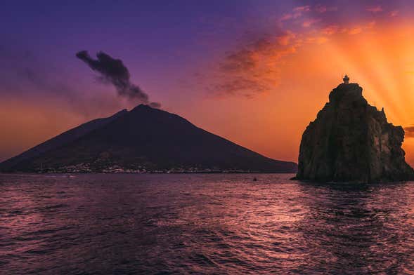 Al volver al barco para realizar el trayecto de vuelta, realizaremos una parada para cerrar la excursión con broche de oro. ¡Veremos la erupción activa del volcán Estrómboli al caer la noche!