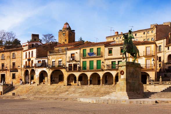 Comenzaremos nuestro free tour en la Plaza Mayor de Trujillo, una de las más bonitas de Extremadura. En este céntrico lugar del municipio cacereño observaremos la famosa escultura ecuestre del conquistador del Imperio Inca, el actual Perú: Francisco de Pizarro. También contemplaremos la arquitectura renacentista de sus bellos palacios y de la Iglesia de San Martín de Tours.