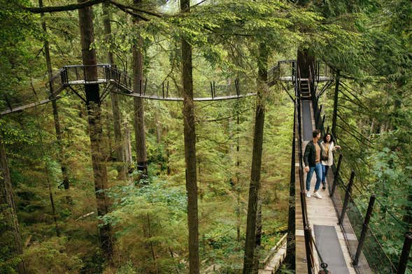 Reservando esta entrada a Capilano Suspension Bridge Park exploraréis a vuestro aire las diferentes áreas que alberga esta reserva natural. Uno de los lugares más famosos del parque es el puente colgante de Capilano, construido a finales del siglo XIX, suspendido a 40 metros de altura. ¡Las vistas desde allí son fascinantes!