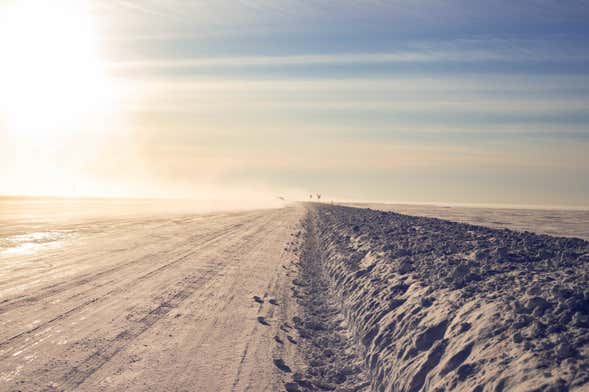Recorreremos tanto a pie como en minibús esta gran vía helada e incluso podremos tumbarnos sobre la superficie de esta carretera, que solo existe entre diciembre y abril. Durante el tour veremos también las casas-barco que atracan en la ribera del lago Great Slave. ¡Descubriremos las costumbres de la población local que habita en estas viviendas tan peculiares!