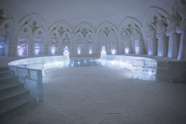 Pendant la visite, le guide vous racontera tous les secrets sur SnowVillage, depuis sa création à la signification des différentes sculptures, peintures et formes à l'intérieur de ce gigantesque hôtel de glace. Saviez-vous que plus de 20 000 tonnes de neige ont été utilisés pour construire SnowVillage ?