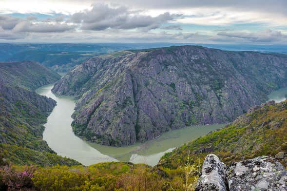 Vous ferez votre premier arrêt à un embarcadère fluvial, où vous ferez une balade en catamaran sur la rivière Sil. Au cours de cette traversée de deux heures, vous pourrez apprécier les célèbres vignobles de la Ribeira Sacra et les particularités de l'orographie locale. Vous verrez également le village d'A Barxa et la cave à vin Ronsel do Sil depuis le barrage de Santa Cristina.