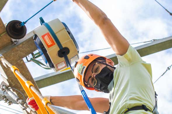Votre aventure sur le Torro Roller commencera par l'ascension d'une tour de 18 m de haut, d'où vous pourrez profiter d'une vue impressionnante sur la végétation d'Orocovis. Vous mettrez ensuite votre équipement de sécurité avant de commencer le circuit.