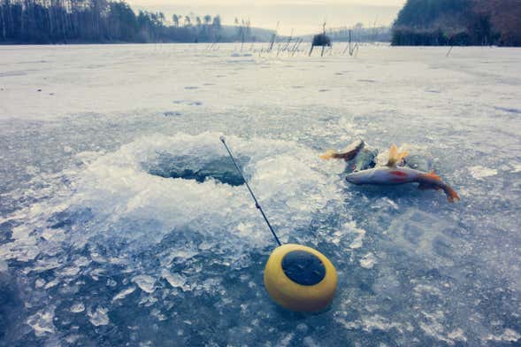 Le chemin vous mènera à un lac gelé où vous assisterez à une courte leçon pour apprendre les principales techniques de pêche sur glace. Vous ferez un trou dans la couche de glace et lancerez votre ligne. Il ne restera plus qu'à attendre qu'un poisson morde à l'hameçon.