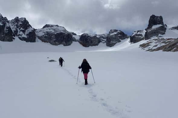 Ce premier itinéraire, qui prendra environ deux heures, traversera des forêts vierges fuégiennes et des montagnes et glaciers blancs. Vers 10h00, vous arriverez à la lagune Esmeralda, et de là, vous commencerez le trek vers le glacier Ojo del Albino.