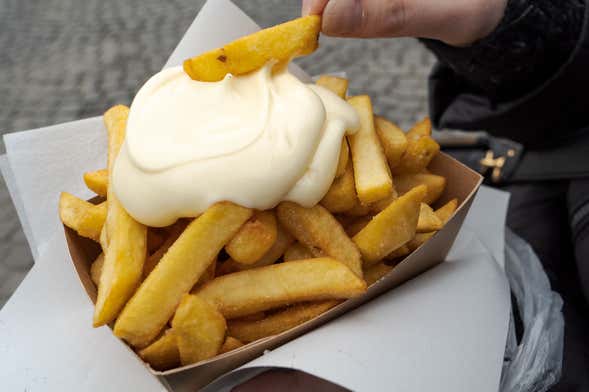 Durante la visita guidata, scopriremo alcune curiosità della gastronomia belga degustando alcuni dei cibi tipici della cucina di Bruges. Potrebbe sembrare un semplice piatto in stile fast food, ma niente è più lontano dalla realtà: le patate fritte in stile fiammingo sono una vera istituzione in città. Le assaggeremo presso una bancarella autorizzata del Frietmuseum (Museo delle patate fritte), in pieno centro storico. Non si tratta solo di mangiare “belgian fries” (diverse dalle “french fries”), ma di assaporarle anche con deliziose ed elaborate salse. Per i belgi la preparazione di questo piatto è un vero e proprio rituale!