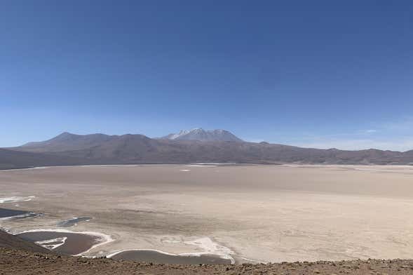 Da Calama faremo un viaggio di circa 190 chilometri con vista sui vulcani San Pedro, San Pablo e Ollagüe e, una volta raggiunta la salina di Ascotán, rimarremo meravigliati dalla sua grande superficie di gesso e salgemma. Inoltre, il paesaggio è costituito da lagune alimentate da pendii di acqua salata durante i mesi umidi. Vi racconteremo numerose curiosità su questo ambiente!