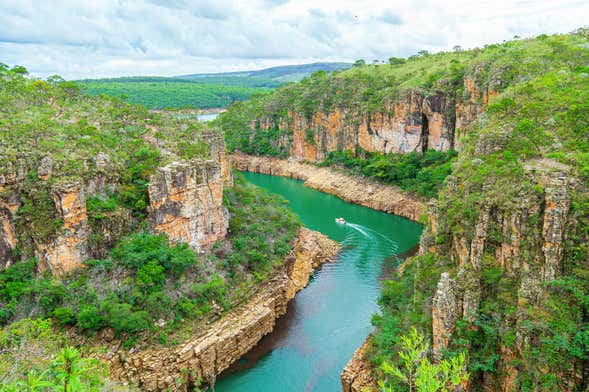 Una volta arrivati al molo, ci inizieremo un indimenticabile giro in barca nel Parco Mirante dos Canyons. Durante il percorso, attraverso spettacolari gole e avremo l'opportunità di contemplare le cascate di Lagoa Azul, Canyon, Cascatinha e Recanto dos Tucanos, uno spettacolo naturale che vi lascerà a bocca aperta.