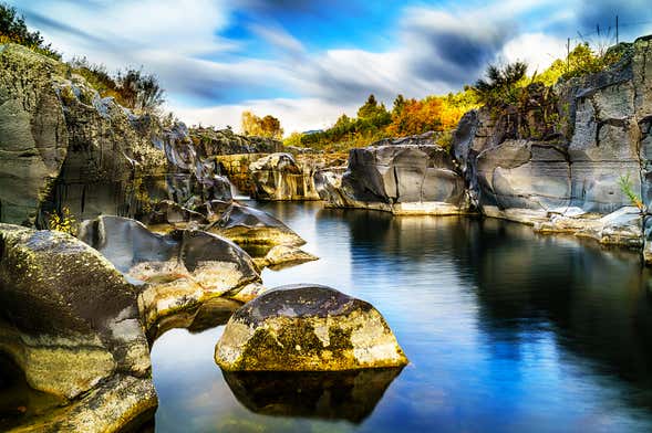 Andremo poi al Parco Naturale delle Gole dell'Alcantara, raggiungendo il fiume per vedere da vicino le enormi pareti rocciose che si innalzano sulle sue sponde. Vi racconteremo come, milioni di anni fa, si formò quest'area vulcanica. Vi sorprenderà!