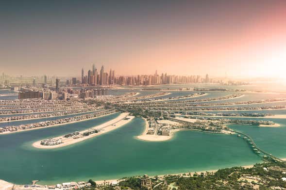 Man mano che ci avvicineremo alla grande ruota, osserveremo in lontananza il profilo della famosa The Palm Jumeirah, una costruzione a forma di palma eretta sul mare e che alberga un resort di lusso, ristoranti e centri commerciali.