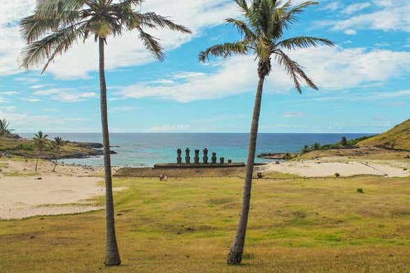 La nostra prossima tappa ci porterà ad Ahu Akivi, il sito sacro dove si trovano le sette famose sculture moai. Vi racconteremo la leggenda che vuole che renda omaggio agli esploratori che scoprirono Rapa Nui, partiti dall'isola di Hiva. Scoprirete tutti i dettagli sui primi coloni di questo territorio!