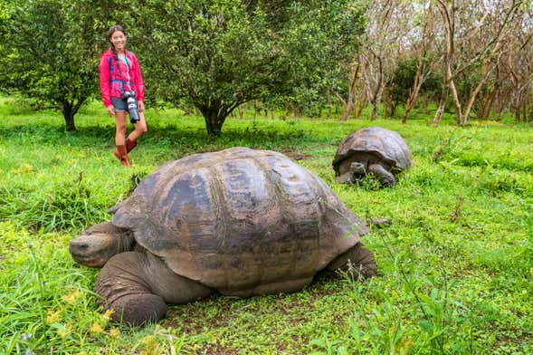 Arriveremo così alla riserva El Chato, habitat naturale delle tartarughe giganti delle Galapagos. Passeggiando lungo i sentieri di questo spazio naturale, incontreremo questi peculiari rettili che possono crescere fino a un metro e mezzo di lunghezza e pesare più di 250 chili. Vedremo come mangiano, rotolano nel fango e si muovono a loro piacimento in questa enorme area verde.
