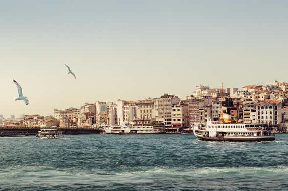 A bordo della barca, potremo ammirare da una prospettiva assolutamente unica e originale alcune tra le principali attrazioni locali. Per un'ora e mezza, navigheremo attraverso il Corno d'Oro, la parte più antica dell'Istanbul ottomana, e osserveremo edifici emblematici come le mura bizantine, considerate una delle opere più importanti della città, il Palazzo Topkapi o la Torre di Galata. In seguito, continueremo a solcare le acque del Bosforo passando sotto i suoi famosi ponti, apprezzando il panorama mozzafiato sui punti d'interesse più suggestivi di Istanbul, come il Palazzo Dolmabahç, il Palazzo Çırağan, la Moschea Ortaköy e la fortezza Rumelihisari.