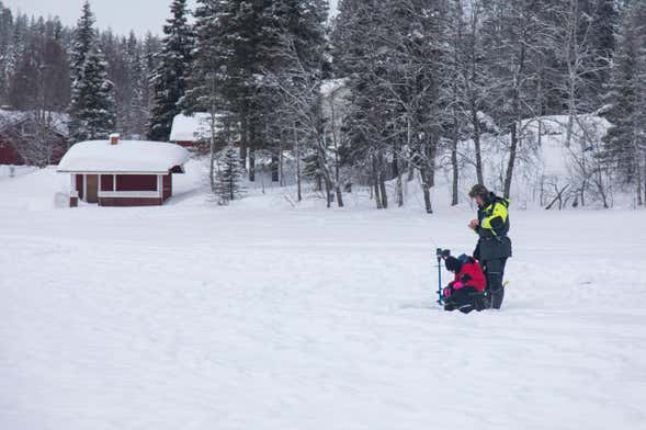 Dopo aver pescato, ci ritempreremo con uno spuntino tipico e una bevanda calda. Infine, torneremo al punto di partenza in motoslitta, dove termineremo il nostro tour dopo tre ore di attività.