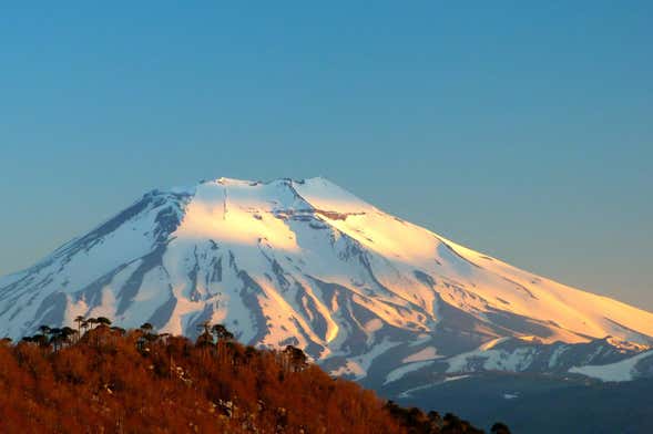Il vostro sforzo verrà ricompensato, raggiungendo 2865 metri d'altezza sulla cima del vulcano Lonquimay. Sapevate che il nome di questa montagna è di origine mapuche? Impareremo questa e altre curiosità sulla vetta e contempleremo altri vulcani andini, come quelli di Llaima, Villarrica, Lanín, Quetrupillán e Sierra Nevada.
