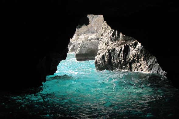 Una volta a bordo, ci dirigeremo verso la Grotta Azzurra, uno dei luoghi più belli di Capri. Situata nella parte nord-ovest dell'isola, questa grotta carsica vi sorprenderà per le sue sorprendenti dimensioni e l'intenso color turchese delle sue acque. Sapevate che qui, anticamente, si rendeva culto agli dei?