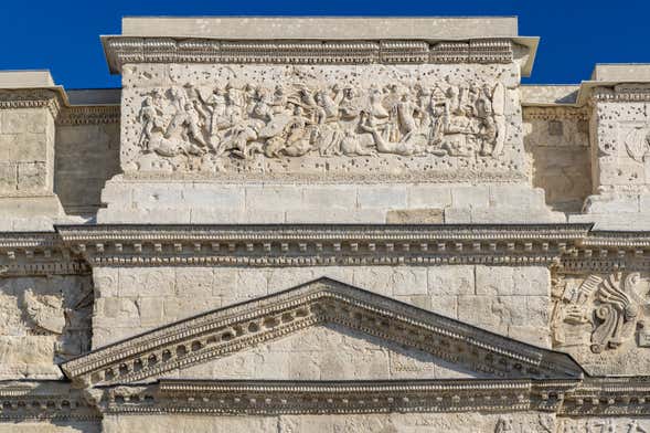 L'Arco di Trionfo di Orange è un altro eccellente esempio di arte romana in città: sebbene il monumento sia all'aperto e non abbia stanze o piani visitabili, con il vostro biglietto potrete conoscere fatti importanti su questo monumento grazie all'audioguida.